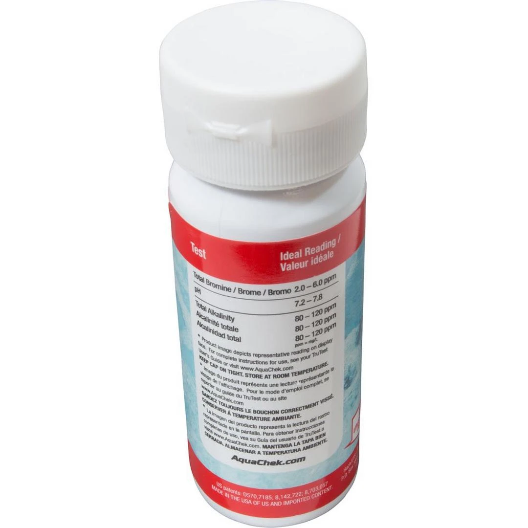 The AquaChek TruTest Spa Strips test for Total Chlorine, Total Bromine, Free Chlorine, Total Alkalinity, and pH, and show accurate results within fifteen seconds.