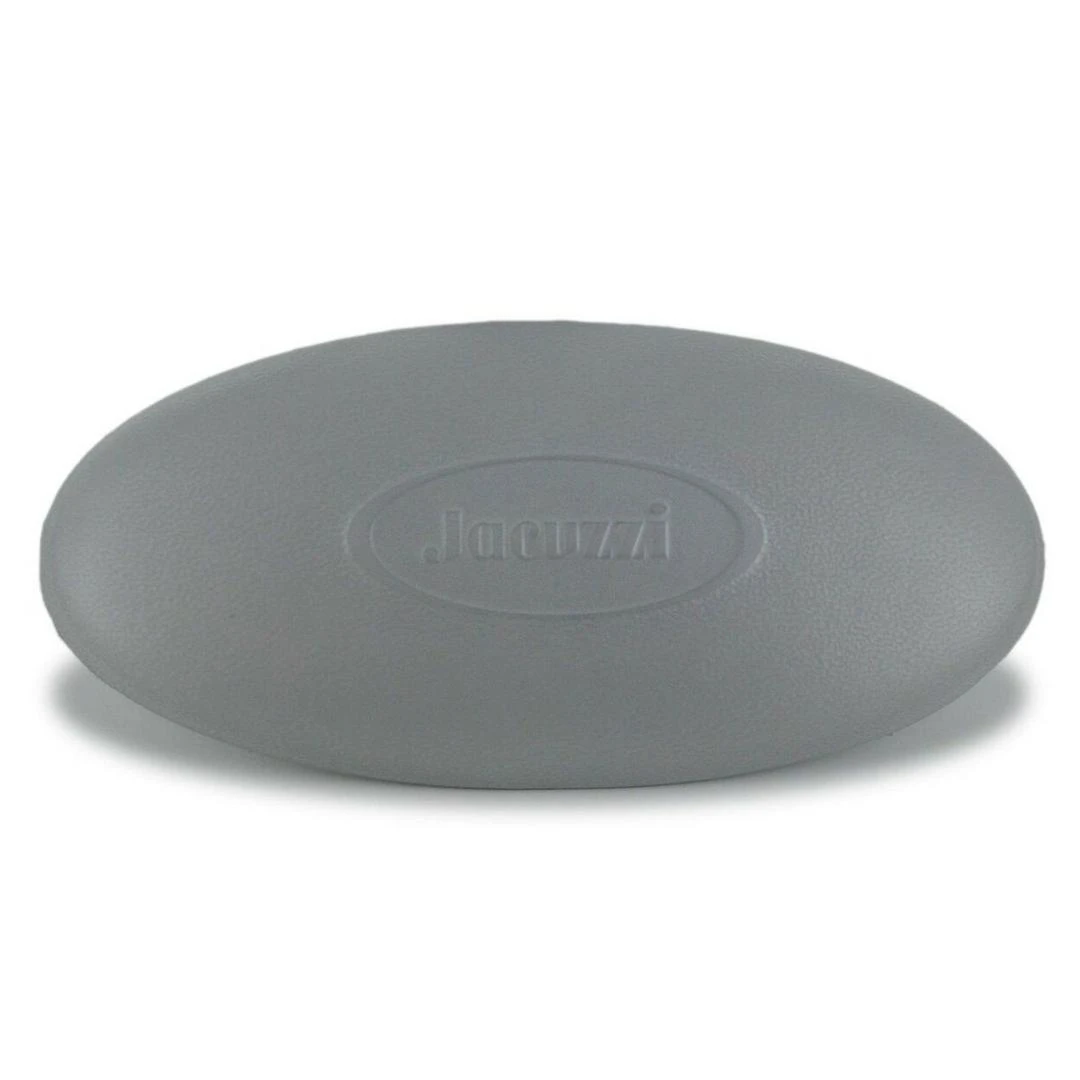 Jacuzzi J-300 series spas use this Oval-shaped, Silver-Grey colored Spa Pillow Insert, pn 6455-007. Jacuzzi logo in the center, foam head rest pillow is coated in rubber emulsion for long life. Oval, non-lit spa pillow fits J-300 Jacuzzi spas made from 2002-2006.