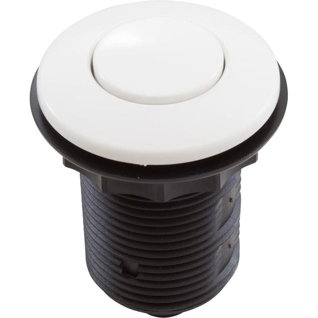 Tecmark low profile high volume air button, flush mount. White in color. Face diameter is 1-3/4″”, and requires a 1-1/4″” hole size for installation. Includes lock nut and gasket for mounting. Features interchangeable metal and plastic trim parts, sold separately.